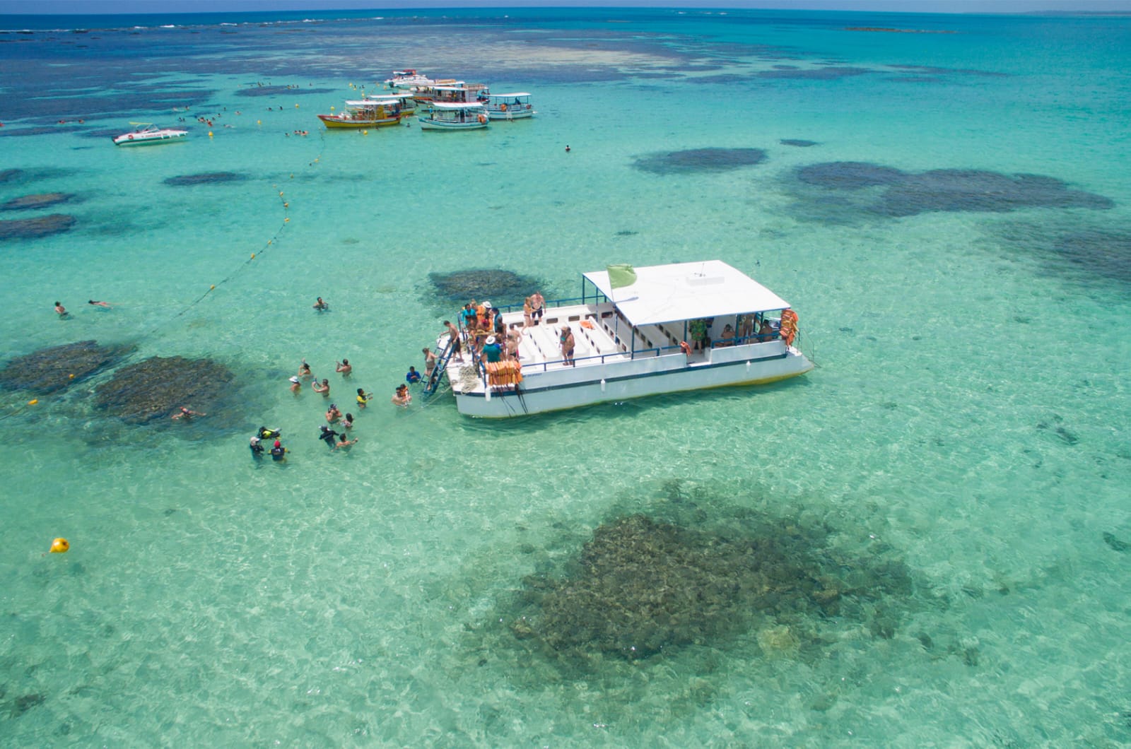 Com a maré alta, há o passeio opcional de catamarã feito pela orla. Certifique-se com antecedência ou com o receptivo local como estará a maré no dia em que irá ao passeio.