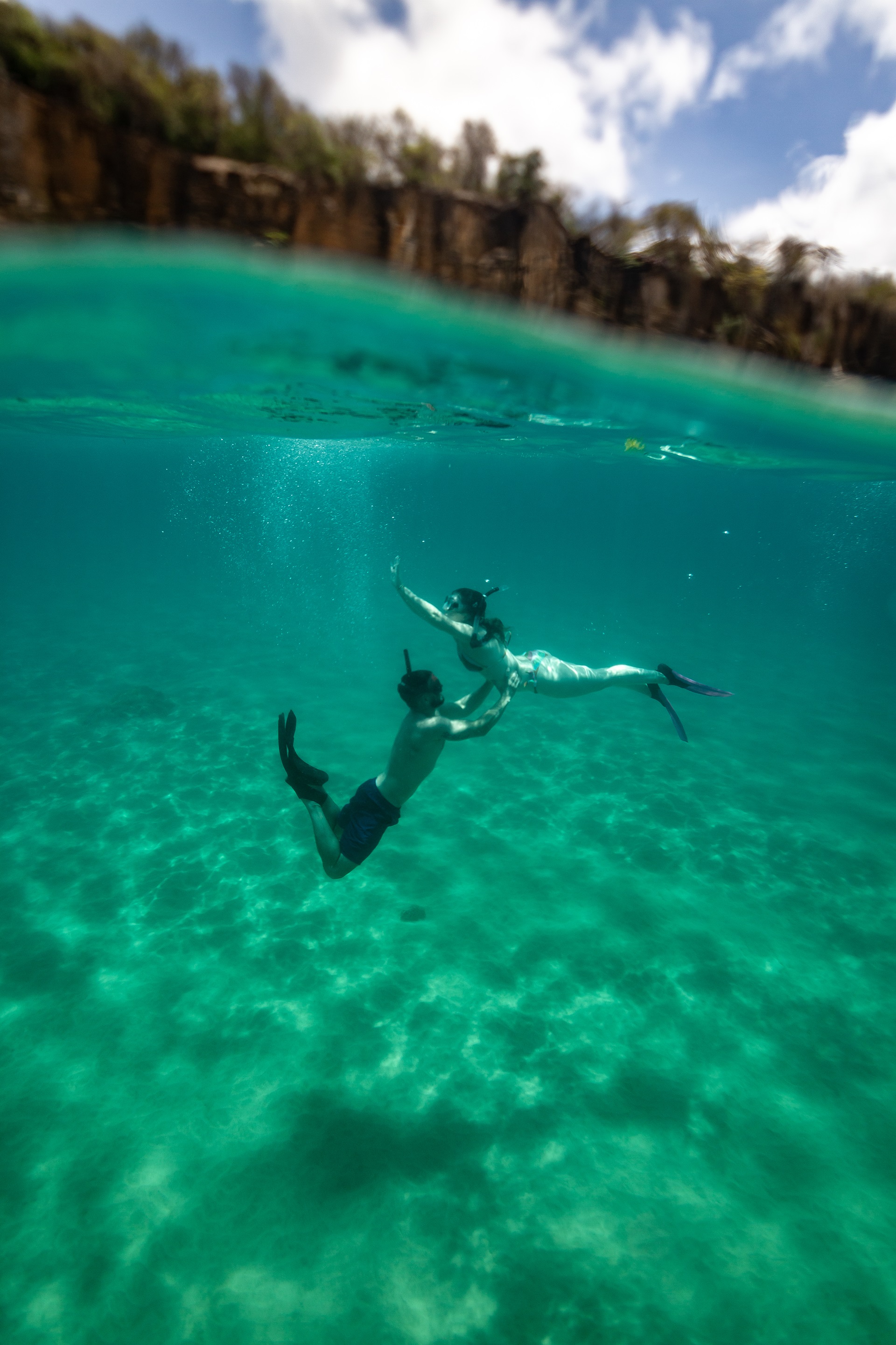 Acompanhados por uma fotografia experiente e mergulhadora profissional, nadar até os melhores locais para capturar o ensaio subaquático perfeito. Nosso guia garantirá sua segurança e você seguirá os planos ideais para registrar esse momento único.